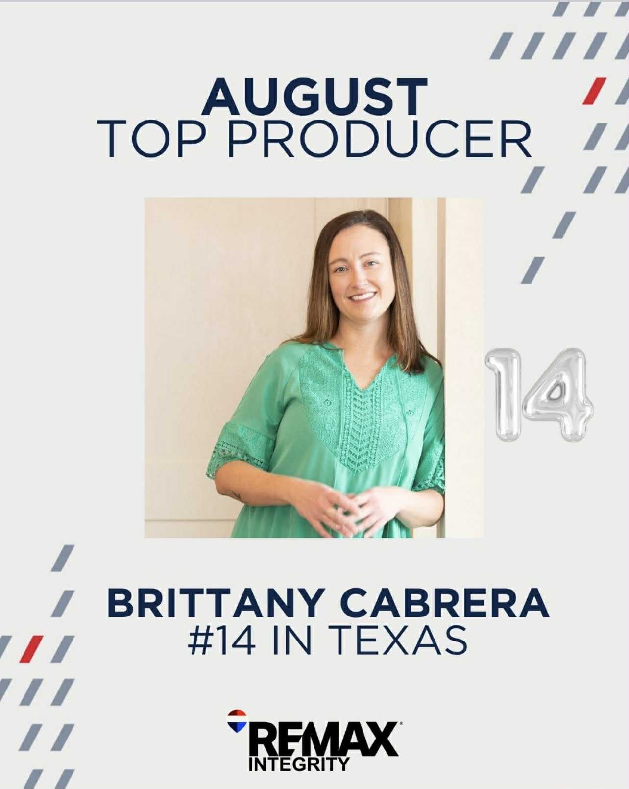 Today, we are honored to share that Brittany Cabrera has been ranked #14 in the state of Texas Top Producing Agents for the month of August 2025.