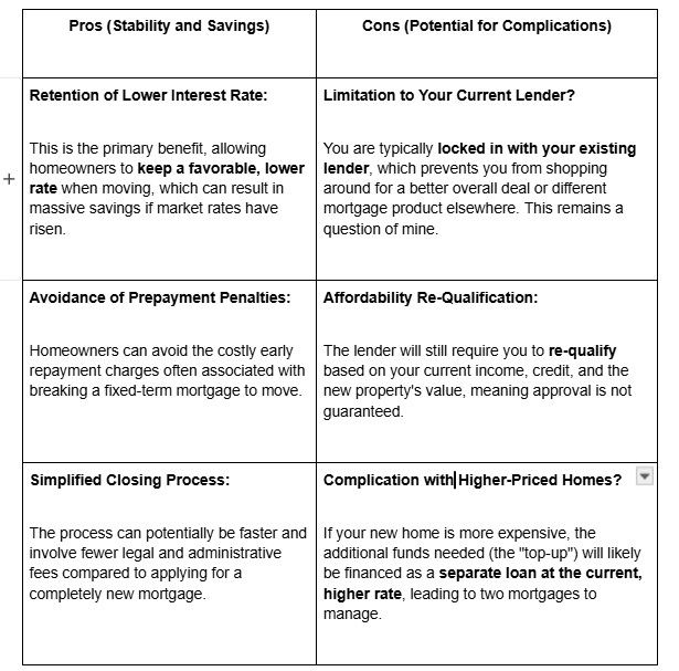 - Transfer of Terms: You essentially "port" the existing mortgage contract, including its interest rate, to the new home.